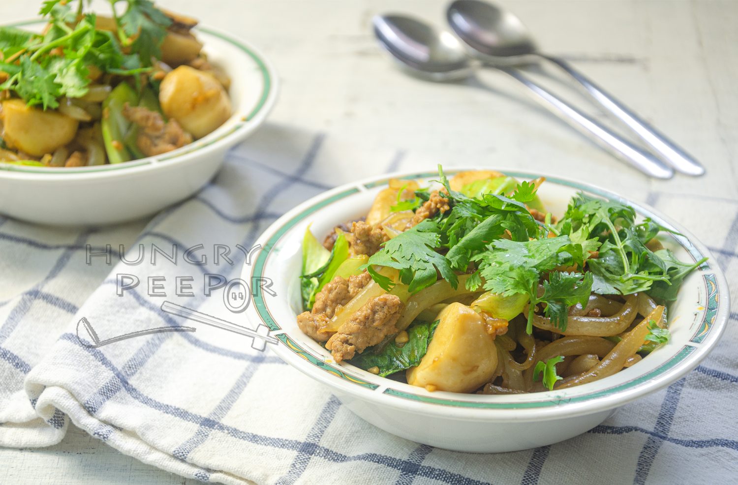 Over here, we also have what we call bee tai mak, or silver needle/pin noodles, or rat noodles. It is one of my favourites, and very easy to cook. This recipe is kind of a self-discovered home recipe. I always look forward to cooking and eating these noodles, my boy and husband love eating it too. It’s very simple to prepare and cook, no fuss, healthy (enough) and a one pot dish, I think the mainland Chinese will love it too!